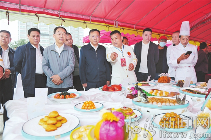 浮山县委书记乔飞鸿,县委副书记、县长栗俊昌等县领导参观传统宴席展览