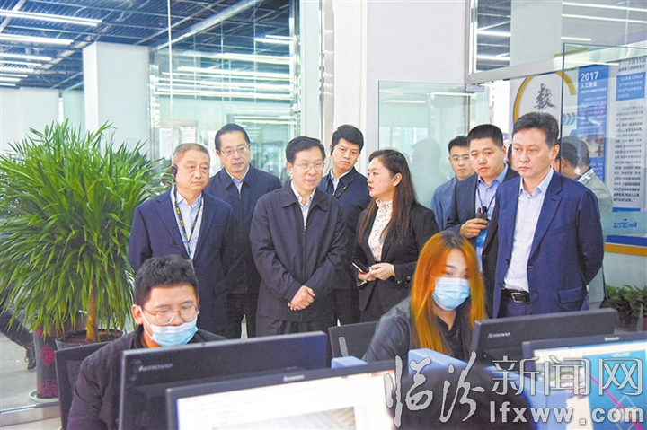 市委书记董一兵,市委副书记、市长李云峰等市领导在山西铂安电子科技有限公司百度人工智能基础数据产业园现场观摩。 郝东博 摄