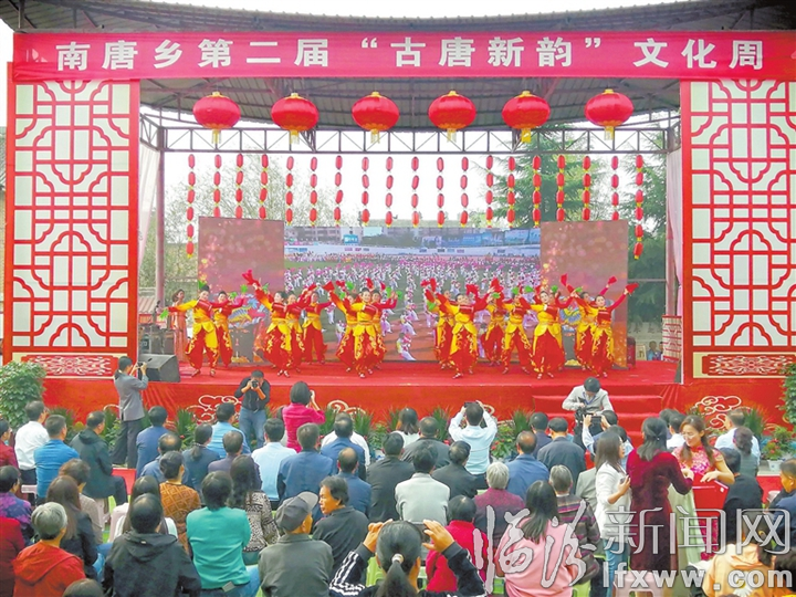 演员们在南唐乡范牛村进行了首场演出,这场演出同时也是南唐乡第二届“古唐新韵”文化周的开幕式表演。演出当天,古老的范牛孔庙人潮涌动、掌声不断。热烈铿锵的《翼城花鼓》、男女声二重唱《锦绣前程》、干板腔《四亲家夸翼城》、评说《移风易俗树新风》、南唐乡歌《梦醉南唐》……每个节目都是全场瞩目的焦点。精彩的节目令观众们赞叹不已,在场的一位阿姨忍不住赞叹道:“这样的节目真精彩,演出了老百姓的红火日子,唱出了老百姓的心声。”