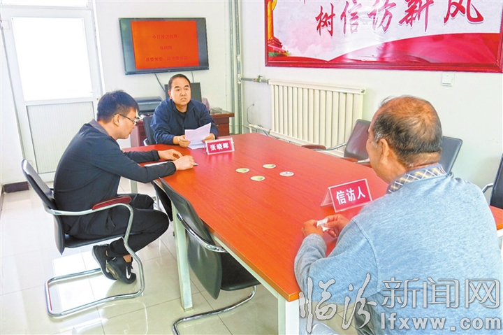 洪洞县委常委、政法委书记张晓晖接待来访群众,现场处置信访积案