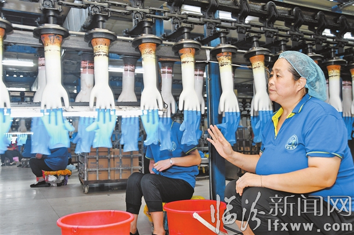 日前,在山西鸿晋塑胶科技有限公司大宁县一次性防护手套产业扶贫项目生产车间,技术人员在流水线监测手套质量。该项目目前吸收大宁县700余名农村劳动力就业,人均月工资3000余元,成为全县贫困群众、搬迁群众稳就业、促脱贫的重要支撑点。