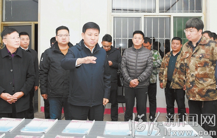 安泽县委书记廉海平(左三)在基层调研“三零”单位创建工作