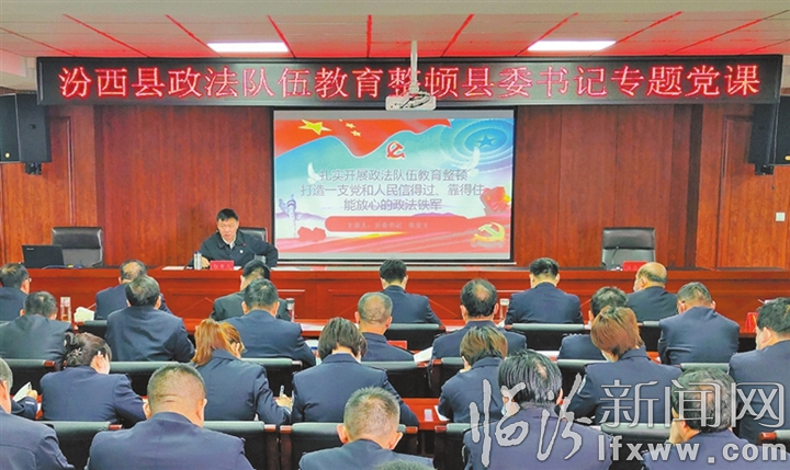 3月23日,汾西县委书记张安文以“扎实开展政法队伍教育整顿打造一支党和人民信得过、靠得住、能放心的政法铁军”为题,为全县政法干警讲教育整顿专题党课。