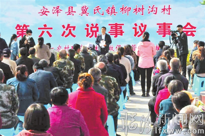 经过半年多的探索完善,今年年初,安泽县出台方案在全县推广“说事议事厅”,明确要求各村结合自身实际,按照方便群众参与的原则,设立一个“说事议事厅”,为群众说事议事搭建一个平台,营造一种民主协商、村民自治的说事议事氛围。