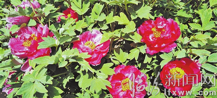 牡丹景区被环抱在群峰秀岭中。古意盎然的建筑与青山绿水交相辉映,建筑布局严谨而有特色。尤其是坐落在牡丹广场南侧山腰的牡丹仙子汉白玉雕像,彰显着历史传说。她亭亭玉立,身材婀娜,薄纱轻挂,云髻高盘,见证着这片土地的变化和发展。牡丹仙子的传说引来了许多目光和脚步。石壁河银光粼粼,从景区中央静静穿越而过。聚仙桥把牡丹景区南北两区串连起来。从“天下第一牡丹”壁两侧拾级32台阶而上,便到达牡丹园。好壮观呀!一眼望去千万朵,春日暖阳中满园的牡丹都开了。一片片花海,淡淡的幽香,吸引游客驻足观赏。我先来到古风古韵的仙子阁前,观赏牡丹花池里的三合牡丹,淡雅的白花在绿叶衬托下一朵挨着一朵,彼此簇拥着。中间的单株最大,最多时花开621朵,被尊称“牡丹仙子”。据了解,今年三株共结1311朵花。我沉浸在这繁密花朵的光辉中,那淡淡的香气似乎也是白色的,这花团锦簇带给我生命的感动。“唯有牡丹真国色,花开时节动京城。”唐诗里绽放的牡丹花,正沿着眼前的牡丹园还乡。