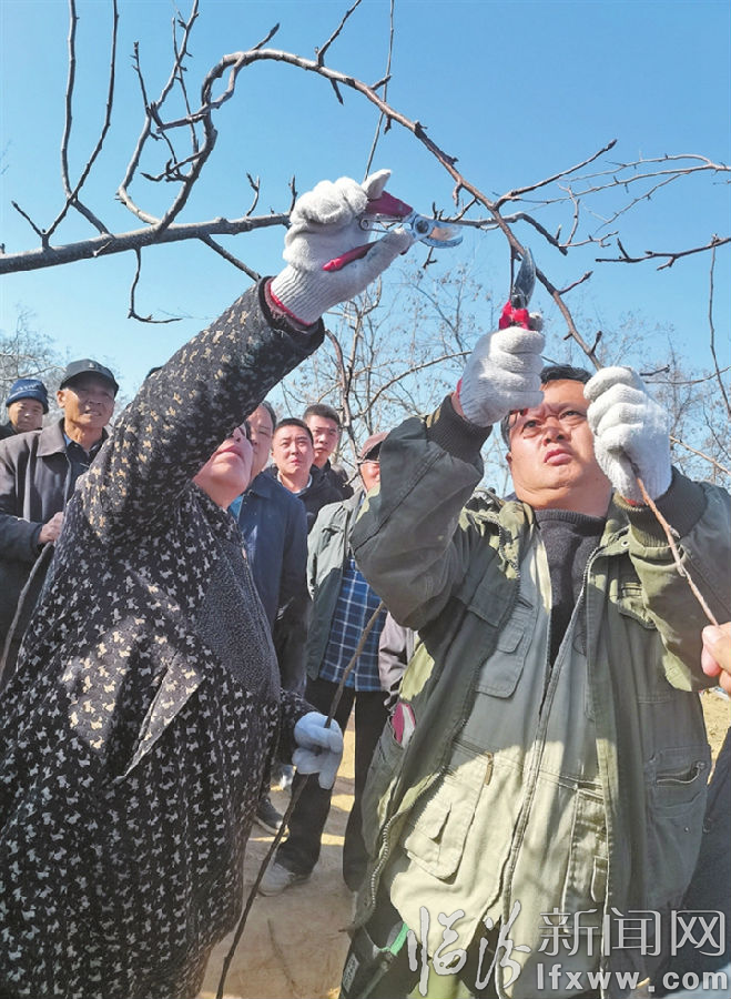 卢志俊在山中乡军地村给果农培训果树修剪技术