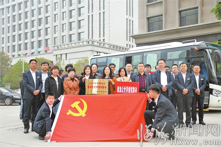 洪洞非公党委组织非公系统“学党史践初心·义务献血报党恩”活动现场。