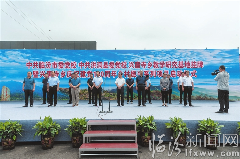 中共临汾市委党校、中共洪洞县委党校、兴唐寺乡教学研究基地挂牌暨兴唐寺乡庆祝建党100周年乡村振兴系列项目启动仪式现场。