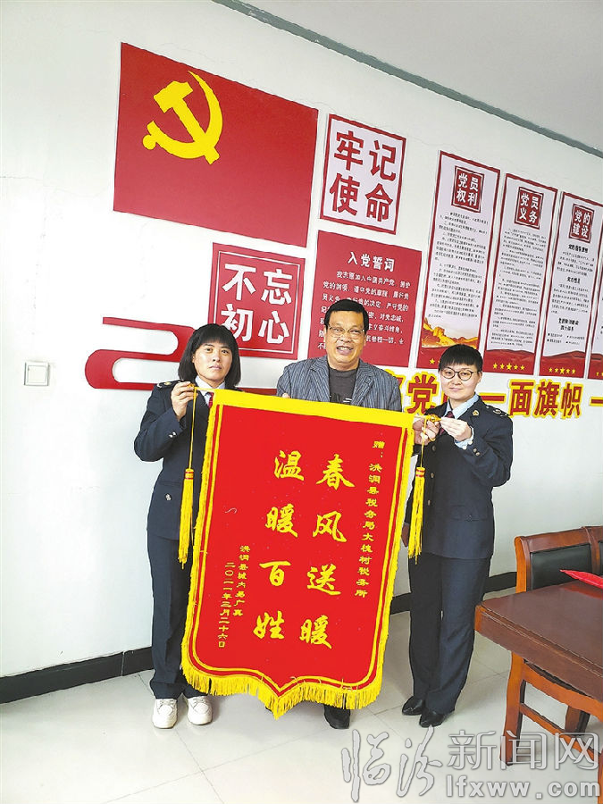 纳税人为洪洞县税务局大槐树税务所送上一面锦旗。