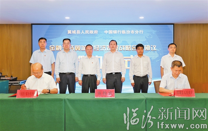 7月23日,翼城县人民政府与中国银行临汾市分行举行金融支持翼城县经济发展战略合作协议签约仪式。市委常委、副市长、翼城县委书记王渊,中国银行山西省分行副行长马军保出席仪式并分别致辞。翼城县委副书记、县长刘锋,翼城县委常委、常务副县长杨海林,翼城副县长石广武参加仪式。