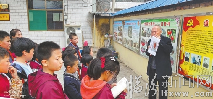 退休老党员房舒明为小学生讲述道教村红色故事。