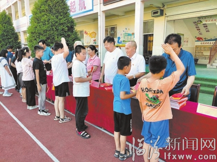 大宁县关工委向城关小学全体师生赠送由县关工委编辑出版的红色书籍。