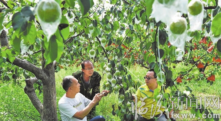 近日,山西省首席水果专家牛自勉博士走进隰县果园考察玉露香梨。