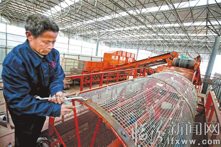浮山县垃圾处理厂工人正在进行安全设备调试