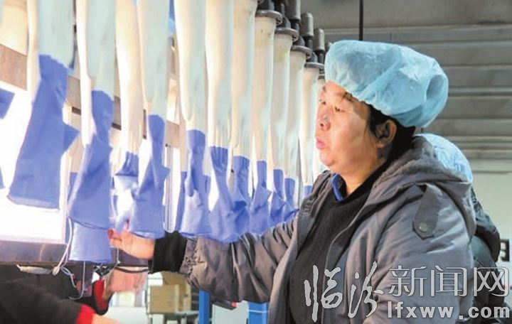 在山西鸿锐达健康防护科技有限公司的生产车间内,工人们正在一次性防护手套生产线上忙碌着。这家公司一期计划建设10条双模丁腈生产线,目前已有3条建成投产,生产线全部建成后年产值可达12亿元,出口创汇1.8亿美元。