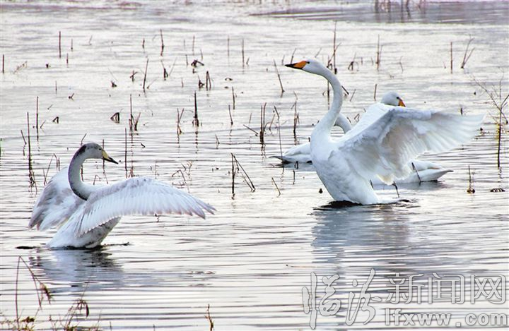 图为日前在侯马市张村办事处下平望村汾河滩涂拍到的天鹅觅食、嬉戏的情景。