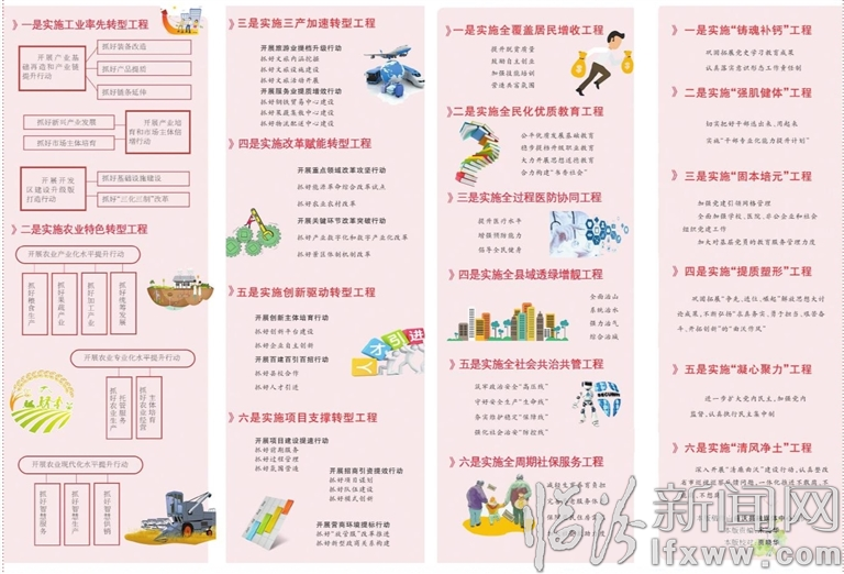 “6×3”工作矩阵。其中,“6”,指“全方位推动”的横向维度,囊括经济、政治、文化、社会、生态文明和党的建设6大工作领域,就是要让“全方位推动”全面系统地涉及到经济社会发展的方方面面;“3”,指“高质量发展”的纵向标尺,包含目标和标准体系、任务和举措体系、政策和制度体系3大体系,也就是要为“高质量发展”提供具有适应性、反映性、引领性的方向、抓手和支撑。