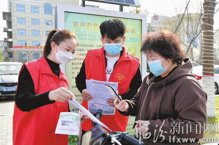 志愿者在街头开展疫情防控志愿服务活动