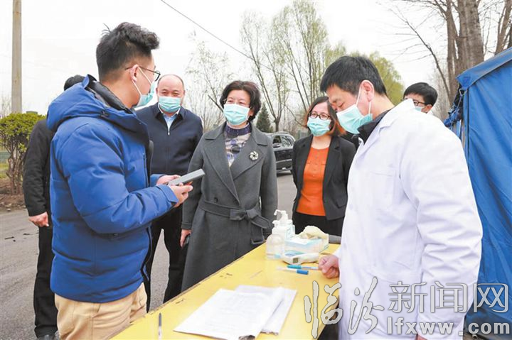 翼城县委书记黄晓君到南梁镇与绛县交界处疫情防控检查站进行检查。 刘伟 摄