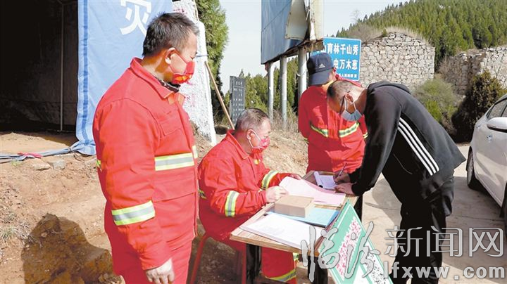 森林管护员正对往来车辆、人员进行严格管理登记