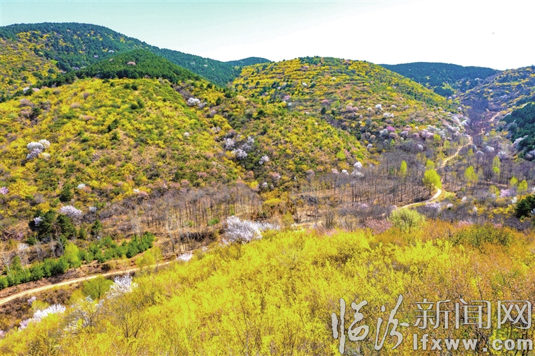 临汾新闻网讯 草木茂盛,花香飘溢,在翼城县隆化镇红沙腰自然生态风景旅游区内,漫山遍野的连翘花竞相绽放,密密匝匝,宛若黄色的波浪,把山峦群峰装扮得五彩缤纷、分外绚丽。走进红沙腰,满山新绿镶嵌着金色的连翘花,层层叠叠,一片接着一片,以旺盛的生机点缀着山野秀峰,蔚为壮观,堪称一道绝美的风景线。(郭振强 摄)