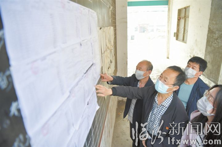 村民在公示栏查看村务公开信息