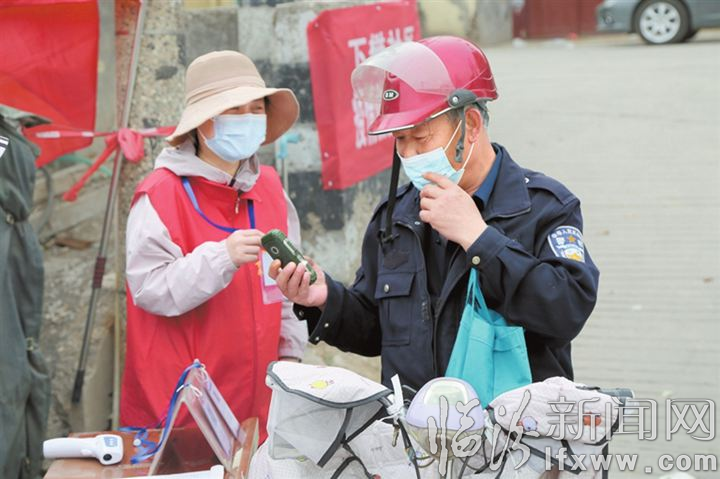 自4月初以来,临汾经济开发区党工委、管委会100余名志愿者下沉一线,在各社区防控卡点,协助社区工作人员开展疫情防控工作。图为志愿者在下樊社区防控卡点引导居民扫码登记。
