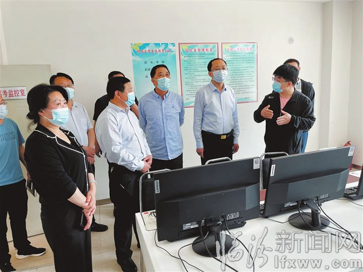 在蒲县高级中学,杨晓舟一行实地查看了视频监控室,详细了解疫情防控、迎考准备等情况。