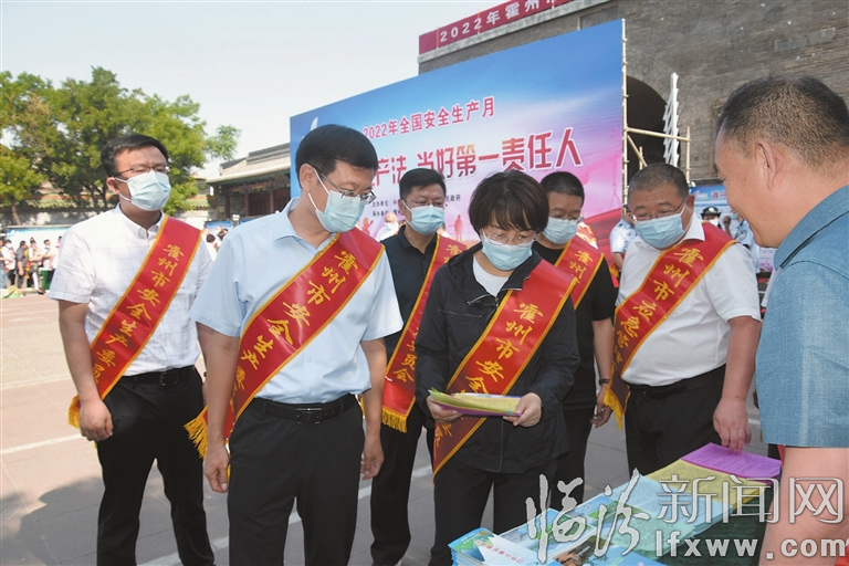 今年6月是第21个全国“安全生产月”。6月16日是安全生产咨询日,当天上午,2022年霍州“安全生产月”咨询日活动在州署广场举行。霍州市委书记李青雁,霍州市委副书记、代市长张可新出席活动并为群众发放宣传材料,宣传安全生产有关知识。29家安委办相关职能部门和重点企业参加了宣传活动。