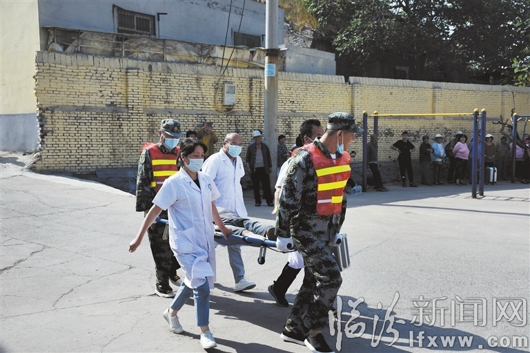 6月11日9时,在霍州市北环路街道北关村,响起了急促的铜锣声和手摇警报声。听到警报声后,村民们扶老携幼,从四面八方跑步汇聚到北关剧场广场……