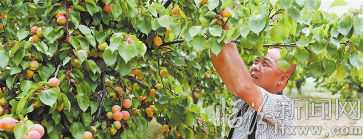 在薛干村果农王福元的杏园里,成熟的杏果挂满枝头,散发着诱人的 果香。