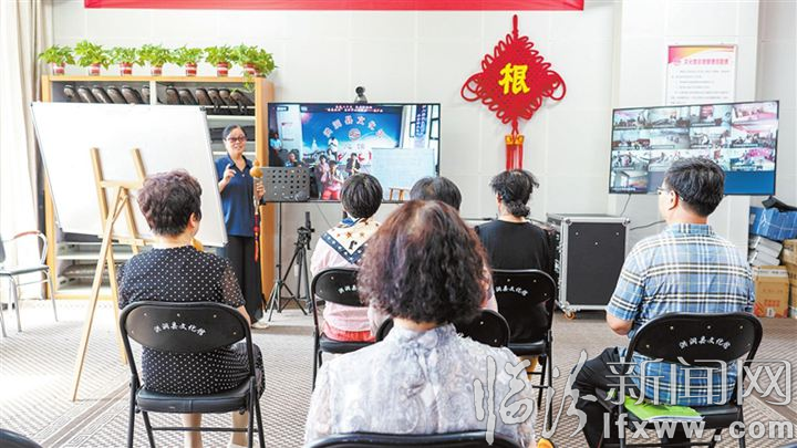 6月24日上午9时,县文化馆内的葫芦丝教室座无虚席。众多老年朋友正手持葫芦丝围坐一堂,文化馆老师正在教授提气、用气、压指等专业知识。老师教得认真,学员学得仔细。全县15个乡镇的文化分馆,通过云视讯视频互动文化辅导平台将总馆教学内容同步播出,各乡镇学员聚精会神听讲,认真跟着老师练习,线上线下,同频共振、其乐融融……