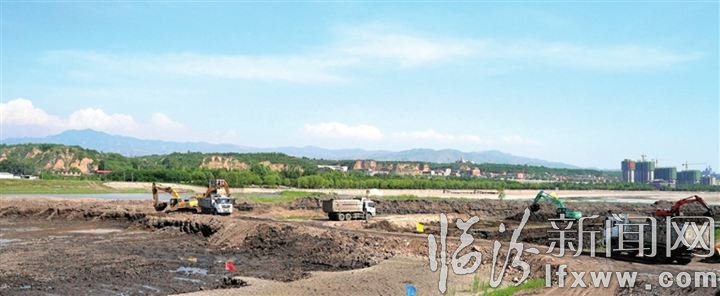 在三官峪涧河襄汾县城区段的清淤现场,几台大型挖掘机正在开挖填埋的淤泥,紧跟其后的大型洒水车不断喷淋降尘……这是三官峪防洪能力提升工程的其中一个项目,于6月17日正式开工建设,建设内容包括河道清淤疏浚、堤防及堤顶道路工程、桥梁工程、绿化工程等。
