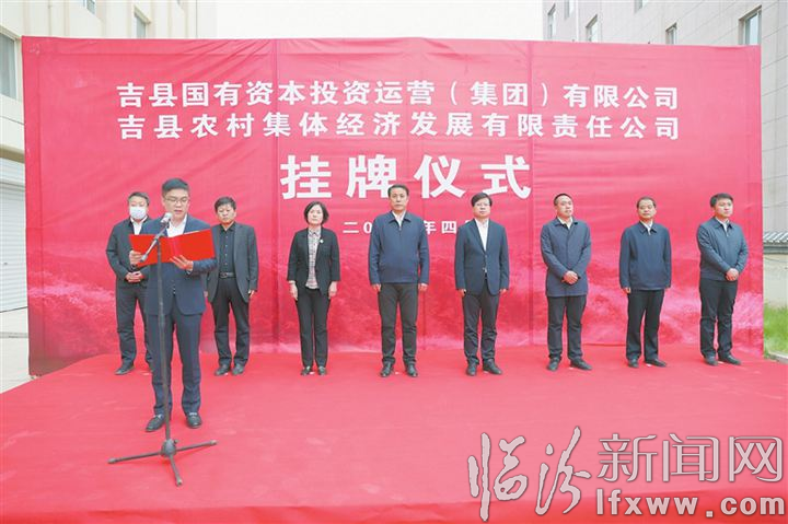 4月29日,吉县国有资本投资运营(集团)有限公司暨吉县农村集体经济发展有限责任公司成立,县领导赵松强、牛永福等出席挂牌仪式
