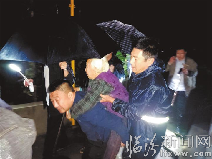 吉昌镇、东关社区工作人员冒雨将两位老人背离危险区域