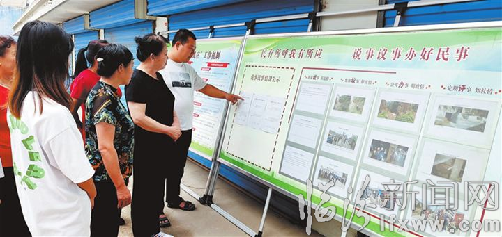 吉昌镇东关社区居民正在“民呼我应”工作公示栏前查看工作进展情况