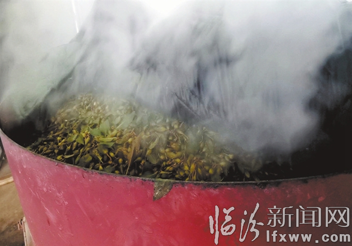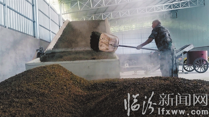 生产车间里,机声隆隆,蒸气腾腾,一粒粒鲜果在经过杀青、无硫烘干后,变成了黑褐色;