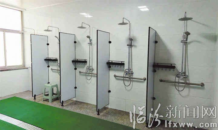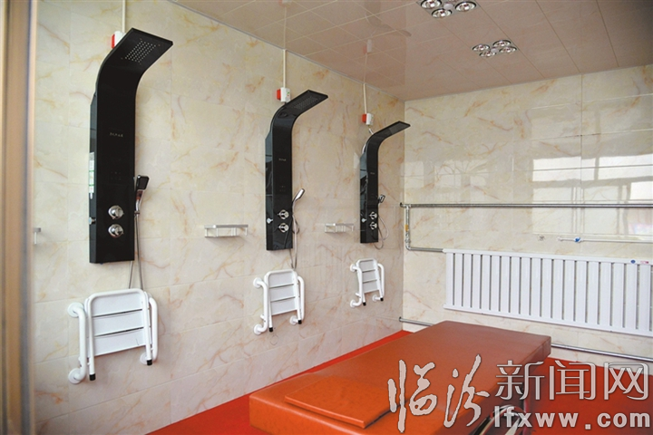 新城镇梁坡村的公共浴室由原村委会改造而成。“原村委会改造成现在的阅览室和浴室,浴室占50多平方米,热水采用空气能和太阳能。”梁坡村村支书李鹏辉介绍。浴室内墙面与地板全部用瓷砖装饰,5个花洒、2个浴缸在灯光下锃亮一新,鹅卵石图案的地板上红色的地垫既美观又防滑。花洒一侧,安装了折叠座椅。“主要是方便老年人,全村859口人,70岁以上年龄的老人有80多个。”李鹏辉说。
