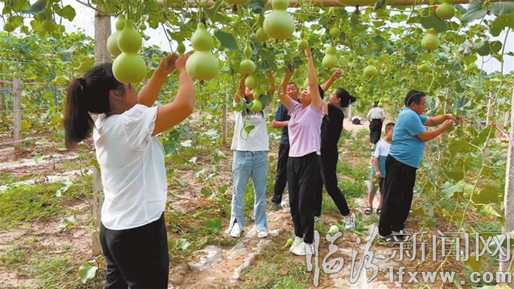 走进搭满藤架的朝阳村葫芦园,放眼望去,大大小小的葫芦挂在枝头,长势喜人。朝阳村党支部书记、村委主任王长发正仔细查看葫芦长势。据他介绍,在村党支部的引领下,朝阳村今年投资20余万元,引进了葫芦种植项目,并与山东加工经销商签订了种植销售一体合同,成熟后的葫芦有了稳定的销路,带动当地村民在家门口就业增收。