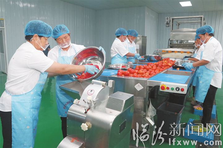 槐埝乡吕寨村西红柿酱加工厂工人正在制作西红柿酱