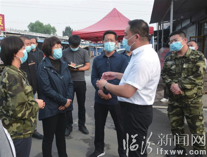 霍州市委书记李青雁在康源农贸市场,详细了解疫情防控各项措施落实情况