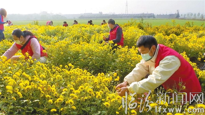 日前,共青团曲沃县委组织团干部开展“服务基层发展,助力乡村振兴”户外延伸培训活动。图为团干部们帮助太许村村民抢收菊花。
