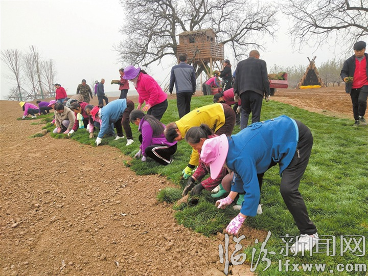 吉昌镇上东村村民正在户外露营基地铺设草坪