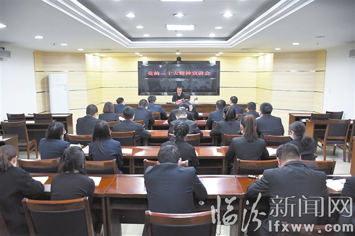 刘泳强调,要把学习贯彻党的二十大精神作为当前和今后一个时期的首要政治任务,结合习近平总书记考察调研山西重要指示精神和省委市委县委全会精神,深刻领悟“两个确立”的决定性意义,增强“四个意识”、坚定“四个自信”、做到“两个维护”,力争在全面学习上走在前、在准确把握上作表率、在高效落实上树标杆,立足本职岗位,感悟使命担当,用实际行动把党的二十大精神落到实处。