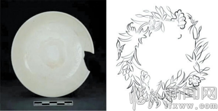 据介绍,这次考古调查约40万平方米。调查各类院落、地块等325处,基本上掌握了陈村窑址分布情况,房屋地块归属等信息,大体了解了窑业遗存堆积性质和分布规律。2022年8月下旬考古发掘正式开展,目前发掘面积共计300平方米,分为4个地点。在金代、元代遗存的发现F20地块,清理出窑炉(残)3座,灰坑13个,灶4个,主体为金代制瓷作坊和元代窑炉遗存。主要收获是元代窑炉,为生土平台上掏挖的馒头窑,仅存窑床以下的弧形火膛及土坑竖穴式通风道。出土遗物以细白瓷为主,兼有少量粗白瓷和黑釉瓷,另有匣钵、支顶钵、垫饼、支具等窑具。其中细白瓷器型有盏、碗、浅盘、盖钵、罐、玉壶春等,器物大部分为素面,装饰以器内印花为主。印花题材丰富多样,主要有水波禽鸟、缠枝花卉、蝴蝶花卉、莲花童子、鱼纹、天马、兔子等,器心大部分由团花图案组成。装烧方法以涩圈覆烧,五粒泥浆粘钉为主流,另有少量三叉形支钉。粗白瓷基本为素面,可辨器型有碗、大盘和枕等,涩圈支烧为主流装烧方法。