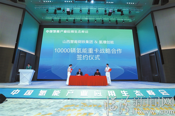 3月5日,在中国氢能产业应用生态峰会上,山西晋南钢铁集团有限公司(以下简称“晋南钢铁集团”)与北京氢璞创能科技有限公司举行10000辆氢能重卡战略合作签约仪式。这是晋南钢铁集团继前期一次性投运300辆氢能重卡之后,再次向氢能物流领域发力的一项重要举措,标志着该集团向构建“零碳智慧物流平台”、打造“临汾绿色运输试点城市”的目标上迈出实质性步伐。