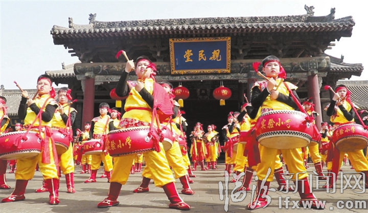 在喧天的锣鼓声与清脆的铙镲声里,厚重的署衙大门被缓缓打开。在通往州署大堂的甬道上,呈现在人们眼前的是舞龙、蒲剧、莺歌、八腊庙战鼓等非遗项目表演,无一不彰显着这座古老城市的灿烂文化。尤其是100余名少儿组成的表演队伍,那娴熟的动作、十足的气势丝毫不输成年人,也使这次千人展演活动被赋予了薪火相传的意味。