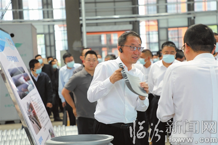临汾经济开发区党工委书记、管委会主任白建成在介绍产品