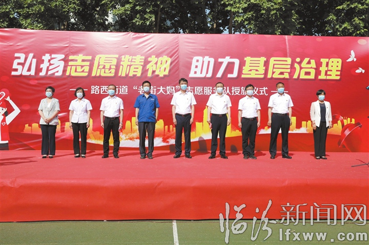 侯马市委书记吴勇参加路西街道“老街大妈”志愿服务队授旗仪式。