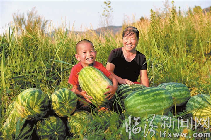 近日,大宁县黄河岸边的西瓜陆续上市。大宁县具有面临黄河,土壤肥沃、温度适宜、昼夜温差大等得天独厚的自然条件,产出的西瓜香甜清脆,渣少、含糖量高,深受市民青睐。 王政 摄